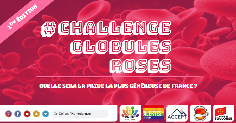 Ce fabuleux Challenge des Globules Roses, dont la première édition est mise en place l'année de notre réintégration au don du sang, a pour objectif de déterminer quelle sera la Pride la plus généreuse de France !