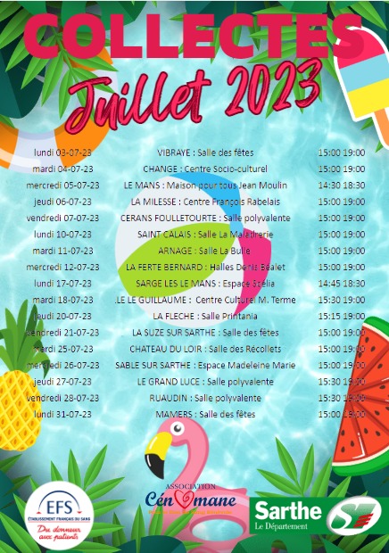 Collectes de sang de juillet 2023 - Cénomane